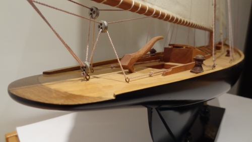 Built in 1898 in an Irish Shipyard according to Scottish naval architect William Fyfe drawings, the regatta cutter Pen Duick was one of the most beautiful sailing boats. She was abandoned after running aground in the muddy flats of the river la Loire. Guy Tabarly, the father of the famous sailor, Eric Tabarly, acquired the Pen Duick before World War II and sold it back to his son in 1952. Eric rescued and lovingly restored her until 1989 after putting all his savings and energy in this major restoration project. Eric Tabarly drowned of the coast of Wales on the night of June 14, 1998. The body of Eric Tabarly was caught in a fishing net weeks after the tragedy.